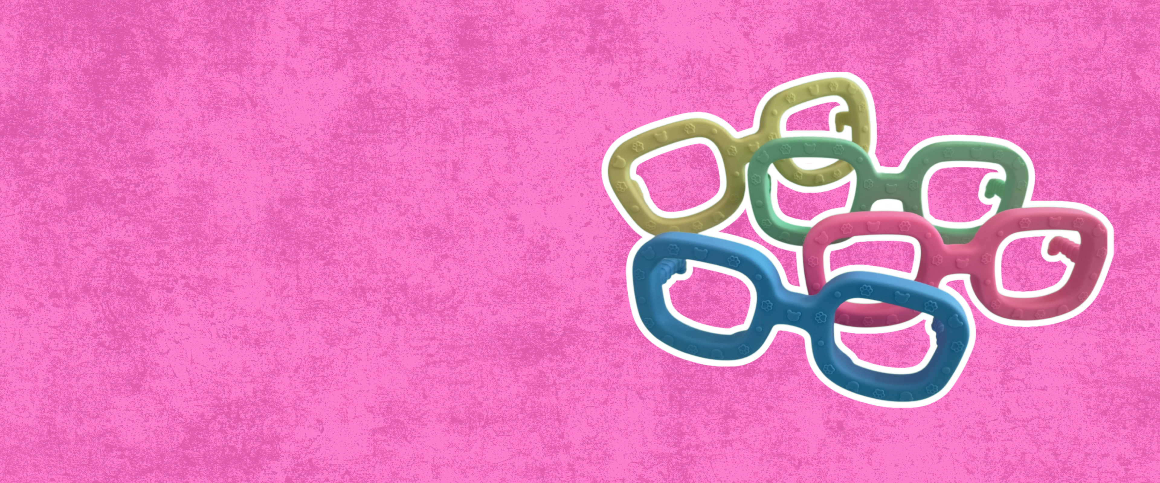 Parents can “wear” the glasses briefly to entertain their little ones before giving them to chew on.